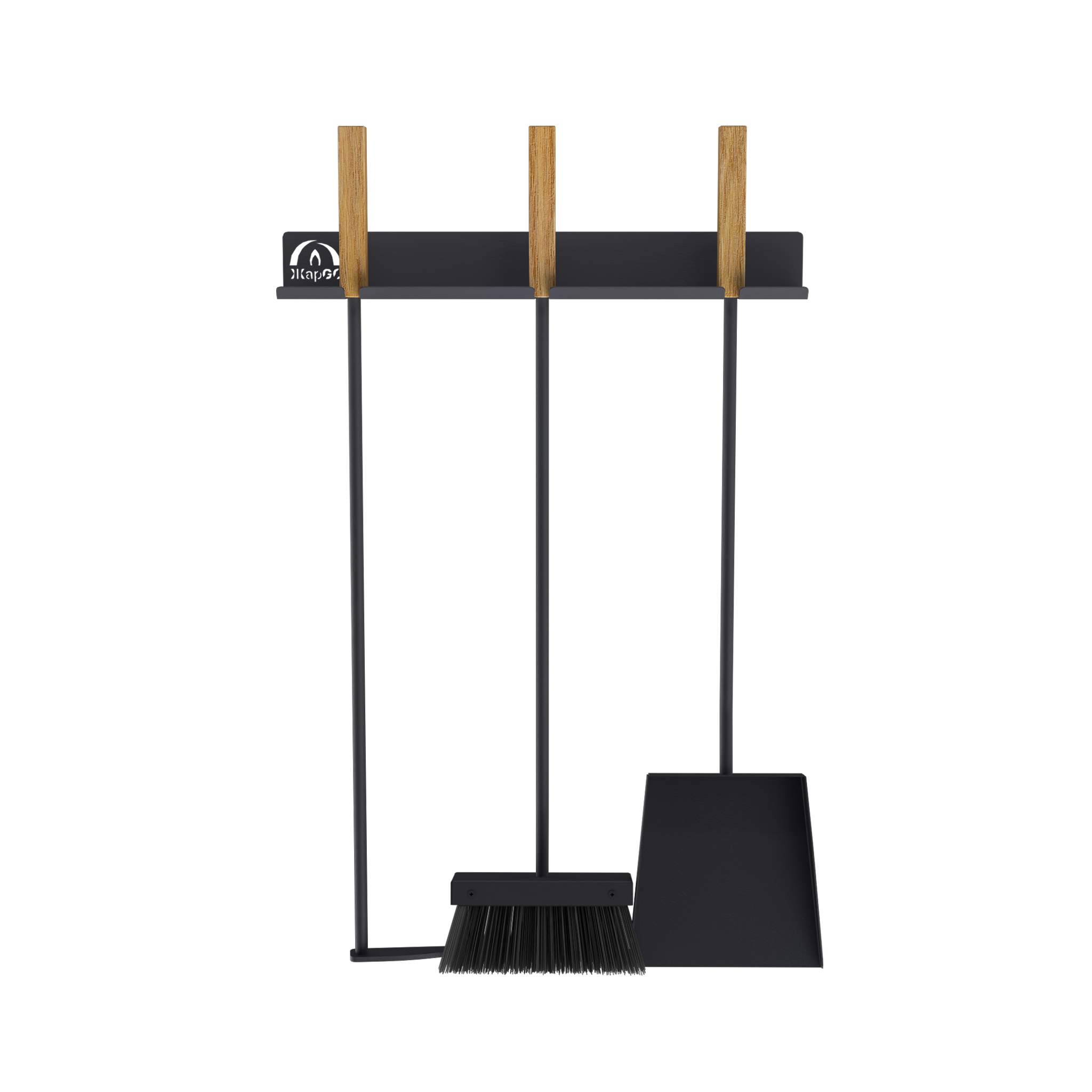 Савок: Идеально подходит для уборки золы и углей. Изготовлен из того же цельного калиброванного прутка с термостойкой краской, что и кочерга, обеспечивая единый стиль и высокую функциональность.